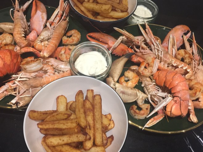 Sorry for my absence of four days. No major disturbances or an awful lot to shout about really. Though that being said, we (John and I) went out in London on Friday night – a surprise meal to celebrate my birthday, that is in fact today. We grabbed the number 9 bus and headed for the Aldwych. By the time we stopped on the Strand, I guessed that it had to be ‘The Savoy’ we were dining at. So, thank you John for the special treat, the food was great. We didn’t celebrate Valentines Day on Valentine’s Day! Shame on us for not. But we chose to celebrate it last night with a seafood feast. Please note the picture above. Tara practiced a new word and insisted on me videoing it ‘Langoustines’, she got there in the end. Please note the video below! I am now looking forward to Birthday cake. It’s a hard life. And thank you to anyone who Facebooked me their birthday wishes. I promise to be back tomorrow with another diary update.