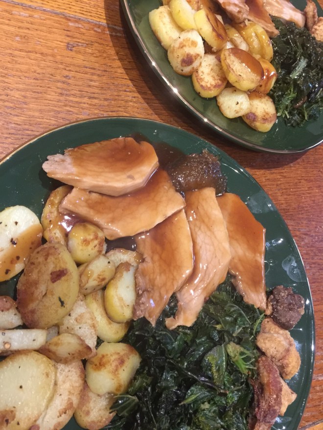 What with John being in London, I thought I would eat the scraps from last nights ‘Roast Pork Dinner’ comprising of Roast leg of pork, butter sautéed Jersey Royal potatoes, curly cale, gravy, Dadda’s home made ‘Apple Jam’ and pork scratchings purchased from the local farm shop (wow).