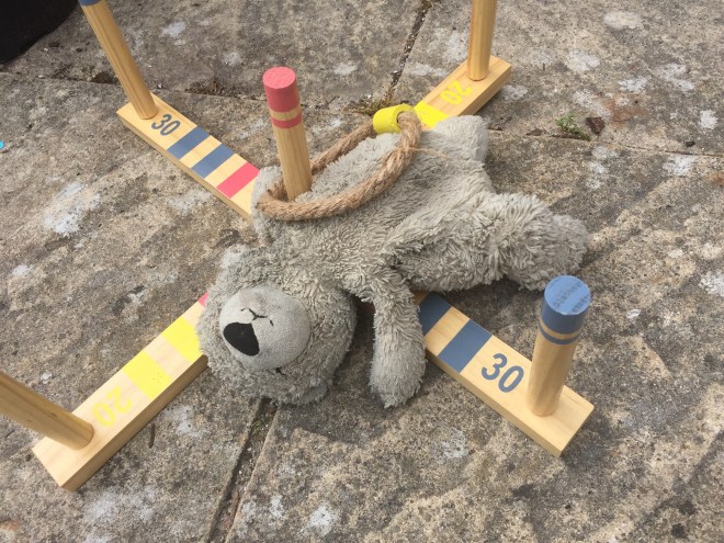 Where did it go! What with MiMi impaled on one of the twins birthday presents and later submerged in water for some time, he now sits within the washing machine waiting for an eco wash and spin.