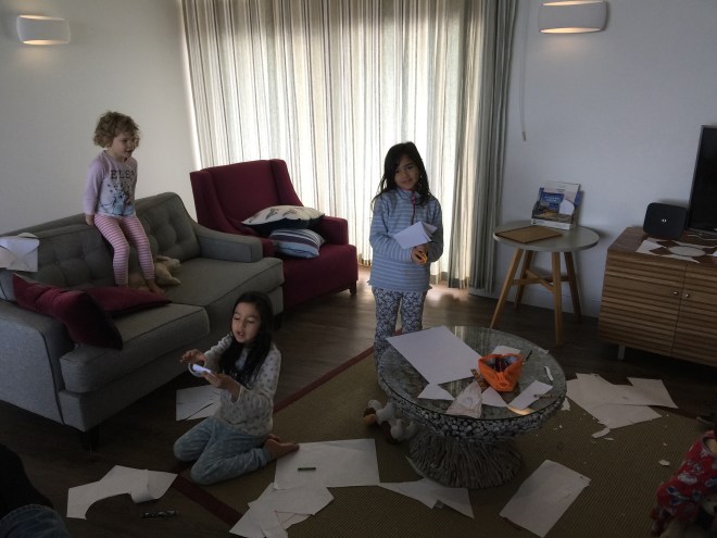 The holiday house is lightly dusted with a mass of paper confetti as the children are doing their thing, making Dadda a multitude of paper Birthday stuff! So I guess a lot of tidying up to do in a bit!