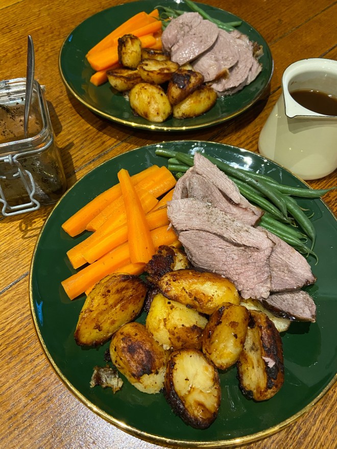 How does a midweek roast leg of lamb sound? Well that was just devoured by us both with gusto! But a whole leg of lamb for two leaves plenty for a repeat tomorrow night or just roughly chop into cubes and place in a couple of freezer bags with a good amount of lemon juice, garlic, ginger, chilli and salt. Marinate for 48hrs in the fridge and freeze for later use in curries or stews.