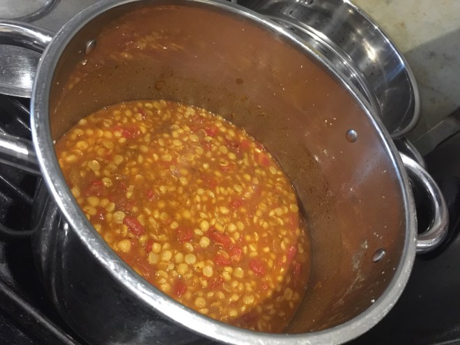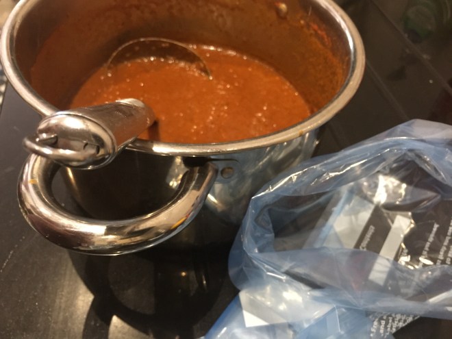 We’ve just finished a roast dinner of our family favourite, roast leg of pork, home made pork scratching straws, Dadda’s apple jam, roast potatoes, garlic and butter fine green beans and petit pois with home made bisto gravy. Phew – and all that served up at the drop of a hat!